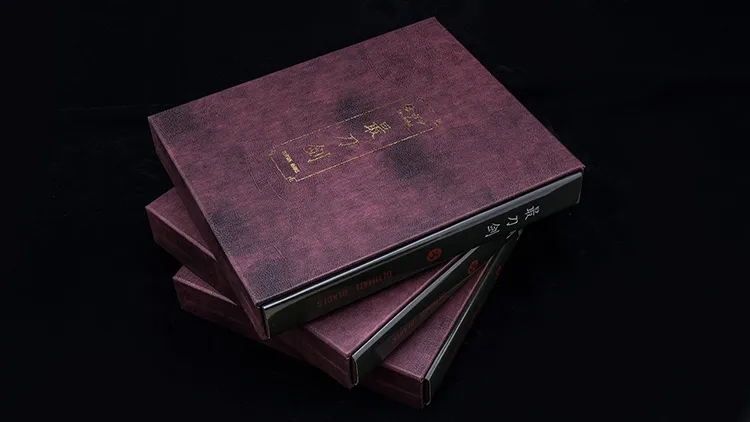 暗棕色皮质书盒配烫金的字体,大气,精美